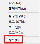 ① 시스템 트레이에 있는 RemoteView 아이콘에 마우스 오른쪽 버튼을 누른 후 [로그아웃] 버튼을 클릭합니다.