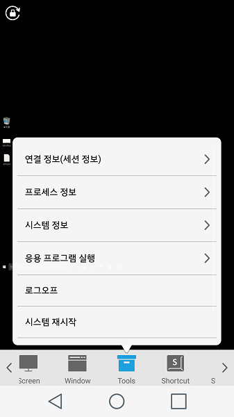 툴바 메뉴에서 () 아이콘을 터치하면 원격제어에 편리한 메뉴들이 나타납니다.